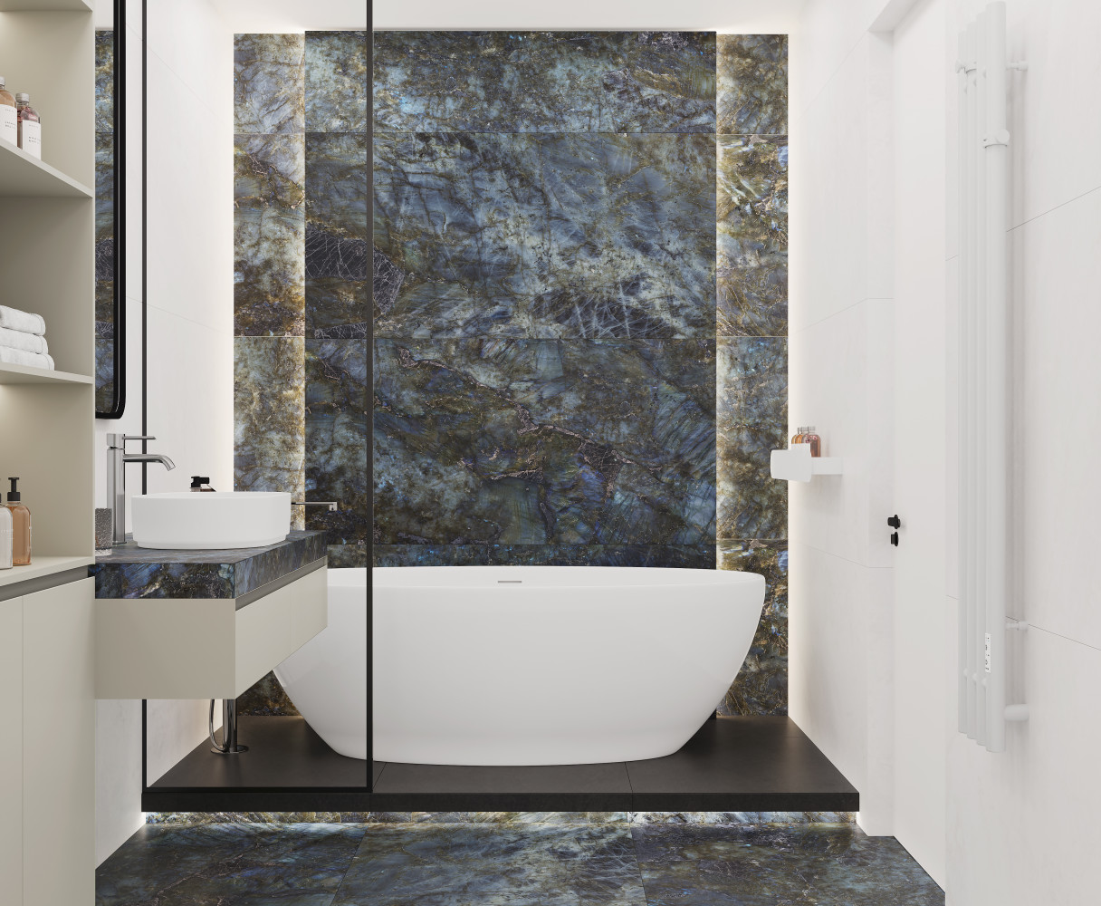 Плитка напольная керамогранит Laparet 160x80 синий +гл.чернила Ригел Азул матовая с глянцевым эффектом глазурованная 160x80