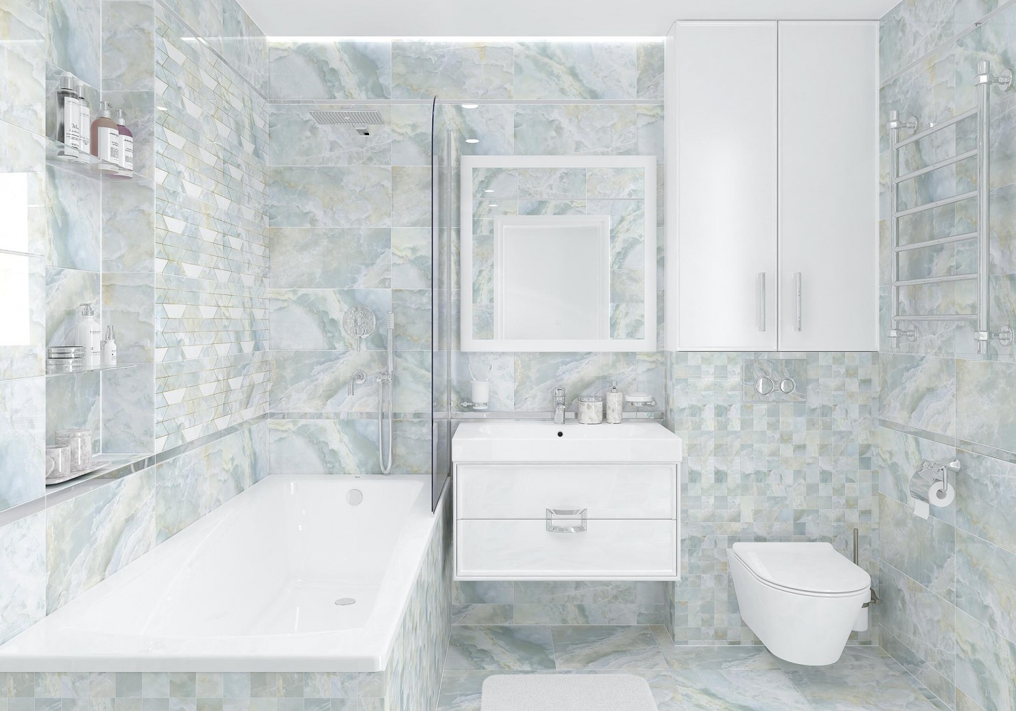 Плитка настенная Laparet 50x25 декор голубой Скай глянцевая глазурованная 50x25
