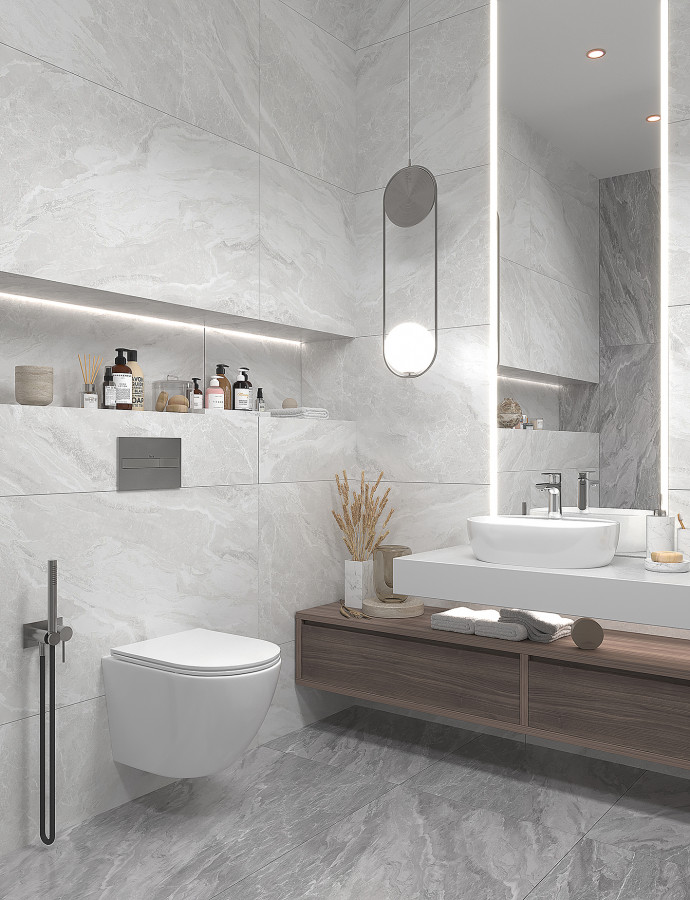 Керамогранит Lunarossa Statuario Mercury Satin сатинированная с карвингом 120x60 9мм Staro