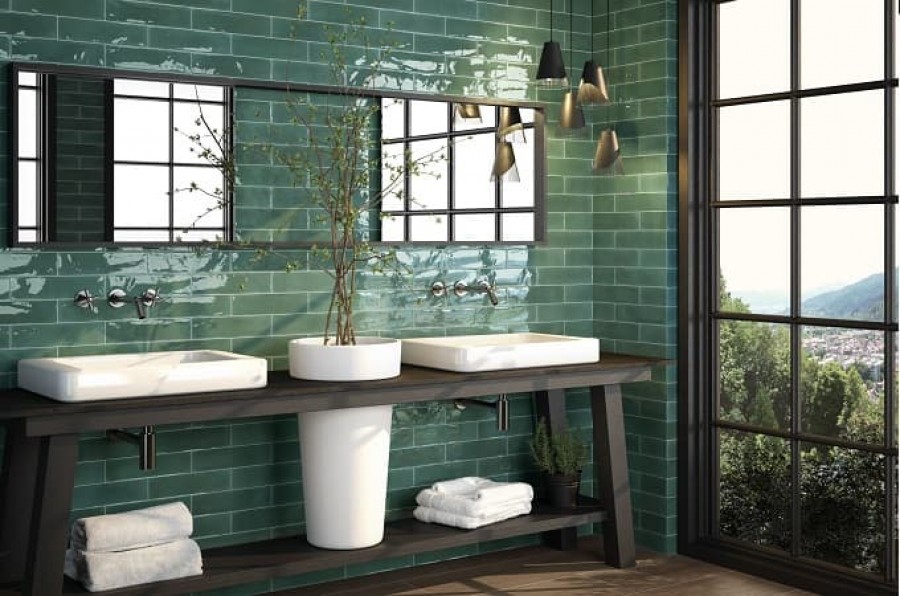 30x8 настенная Opal Emerald гладкая + рельефная глянцевая зелено-синий