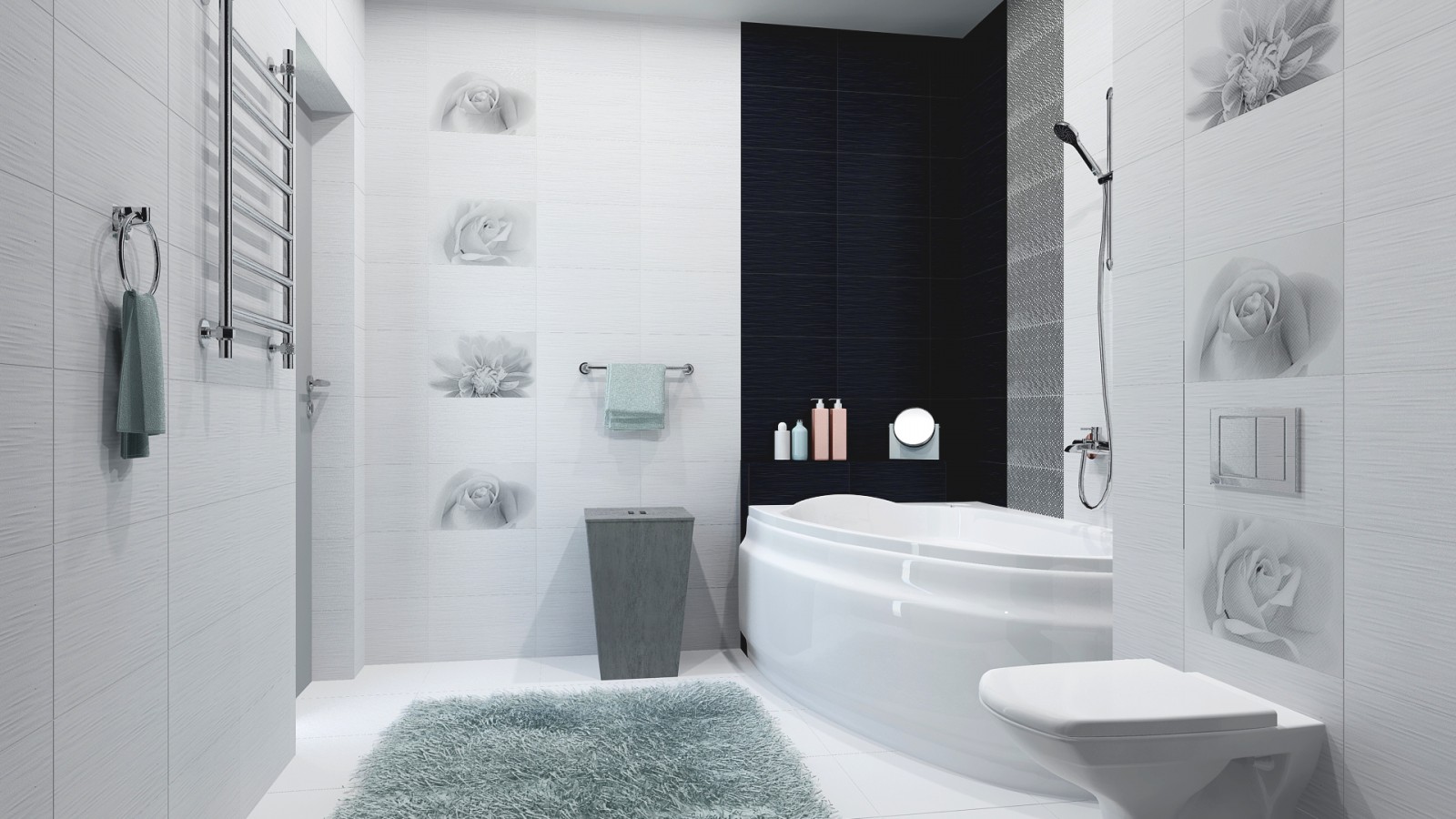 Плитка Шахтинская 40x25 Камелия настенная черный низ 02 глянцевая чёрный