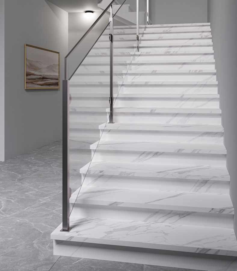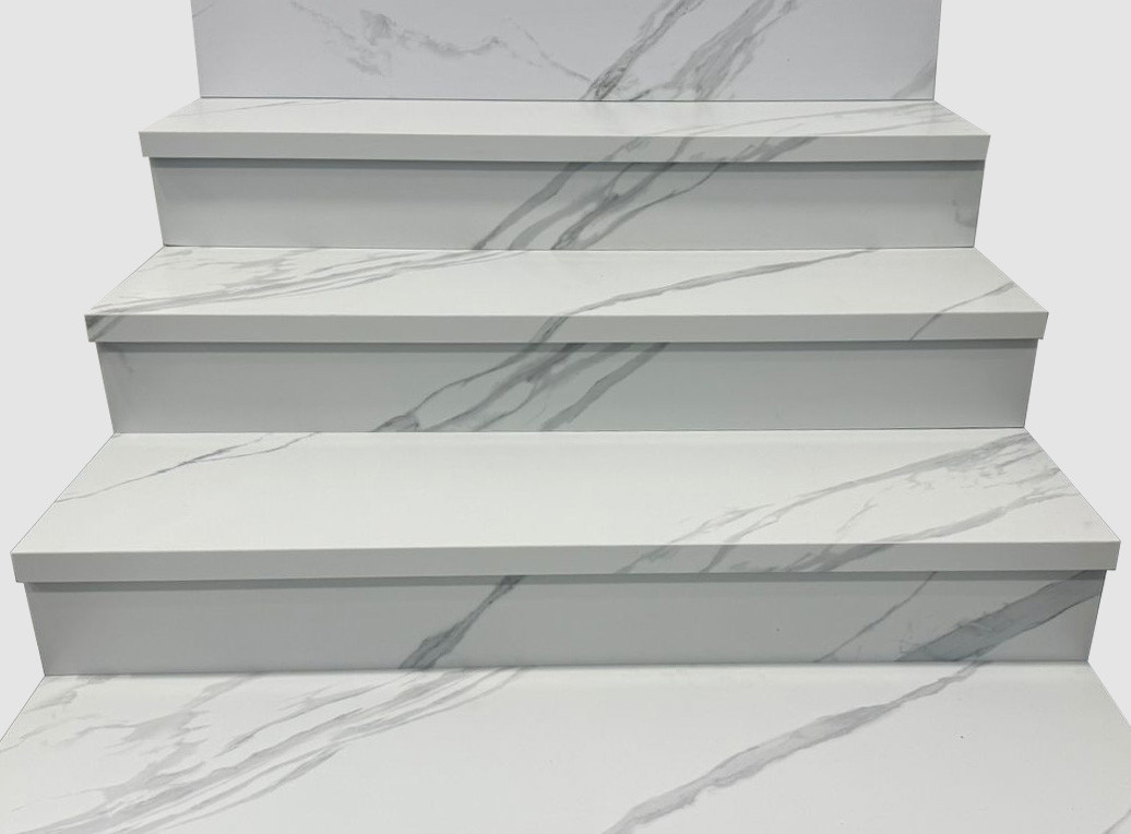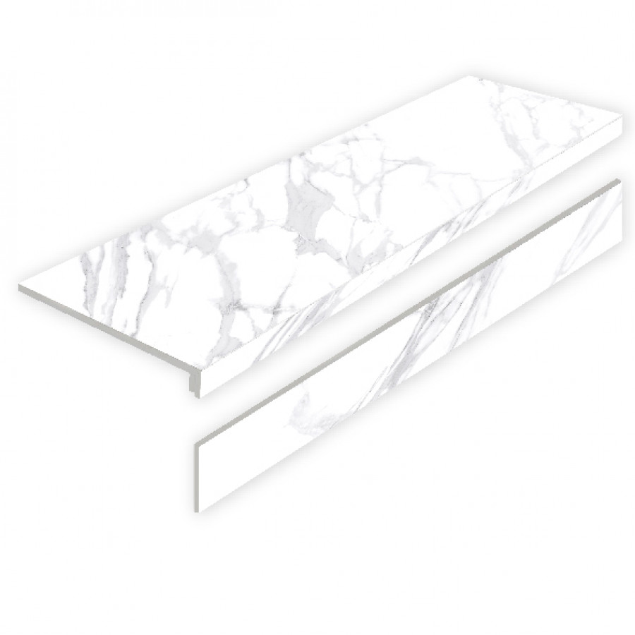 Ступень керамогранит L Ступени Mystical Charm Bianco Matt С Подступенником матовая с рельефом 120x32 9мм Staro