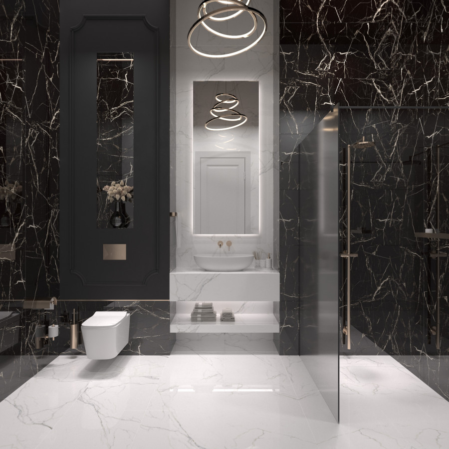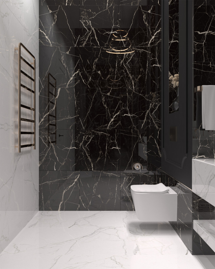 Керамогранит 120x60 8мм суперглянцевая HG2010-A Black Rock черный мрамор Arcadia Ceramica