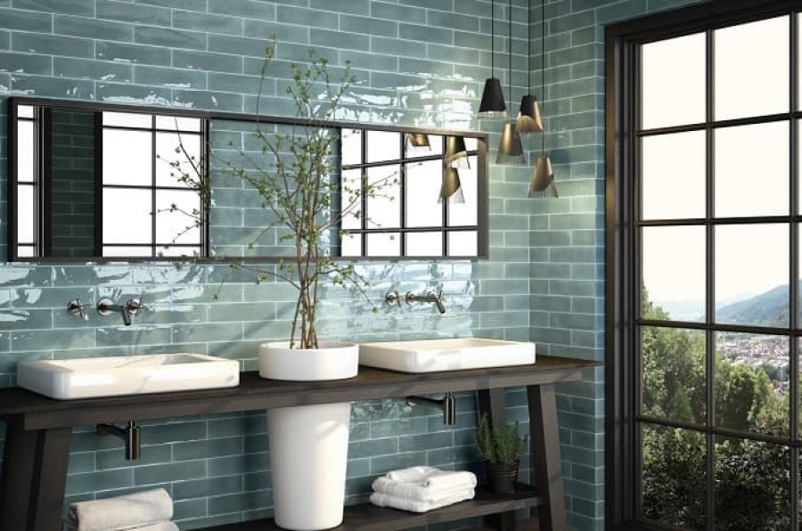 30x8 настенная Opal Turquoise гладкая + рельефная глянцевая бирюзовый