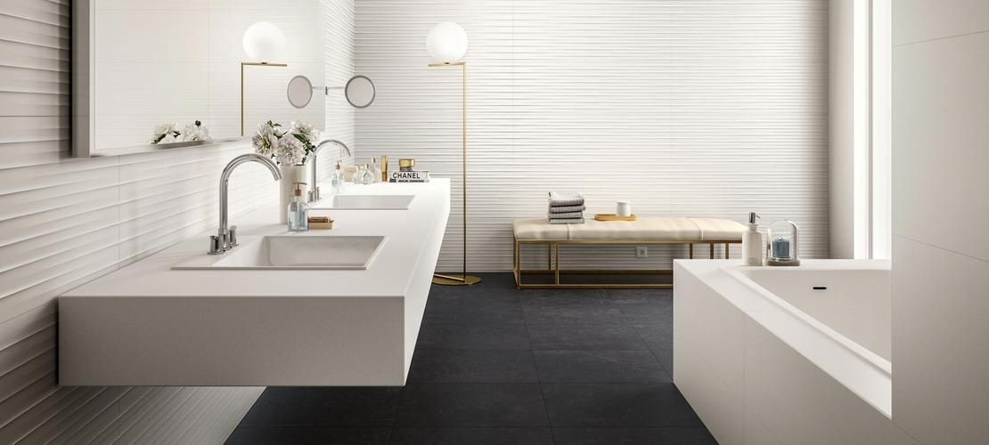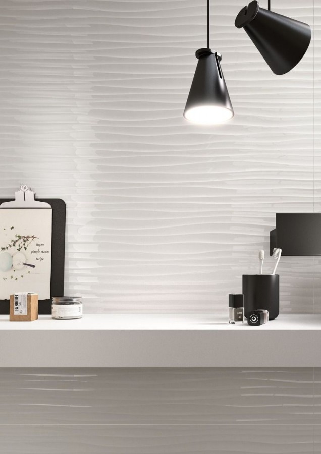 Плитка 120x40 Essenziale Wave 3D Lucido глянцевая белый 8мм Marazzi