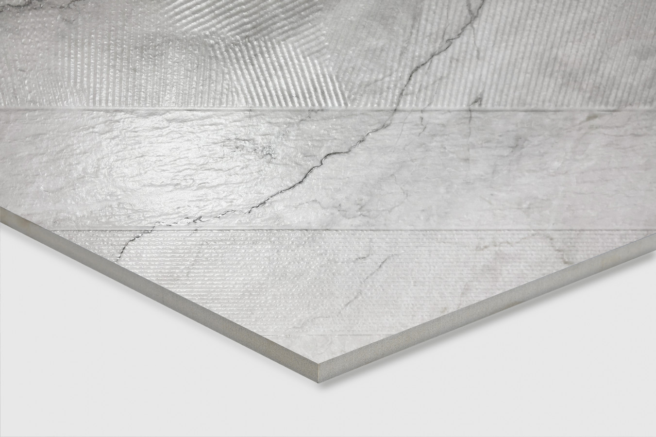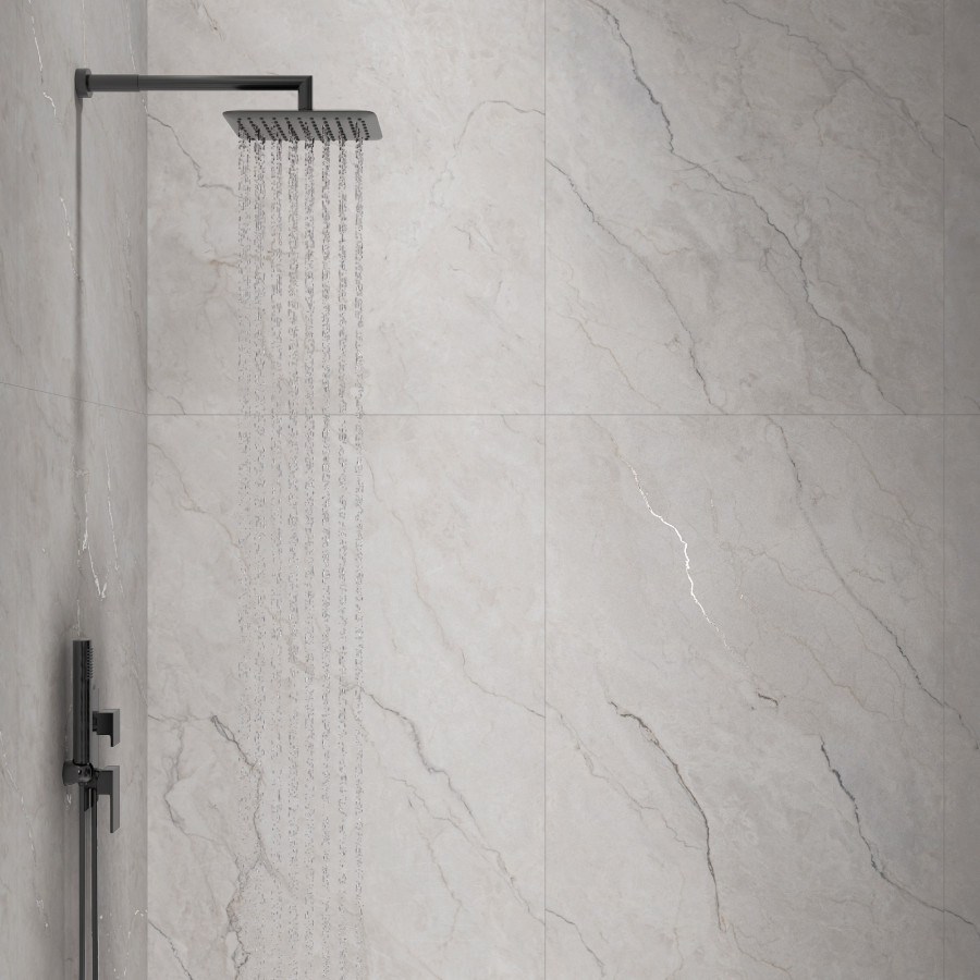 Керамогранит 160x80 9мм матовая с глянцевым эффектом CZ-GL06-B Lumiere White серый камень Arcadia Ceramica
