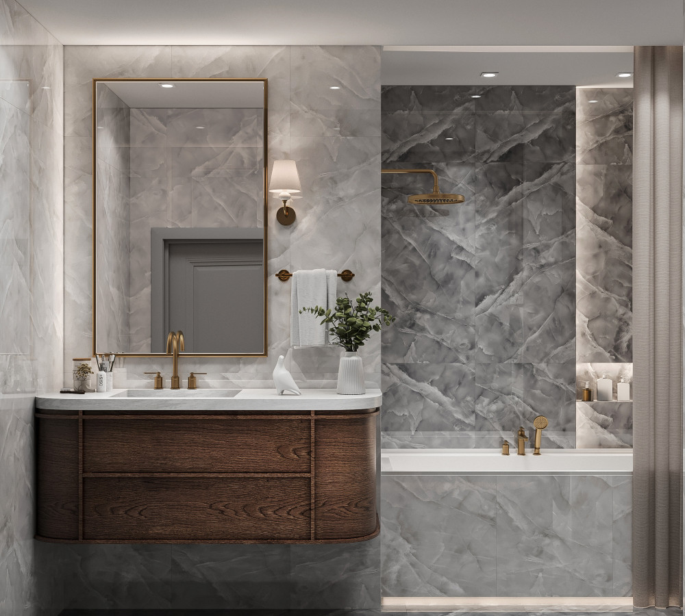 Керамогранит 120x60 8мм полированная FP1022-A Baikal Bianco серый оникс Arcadia Ceramica