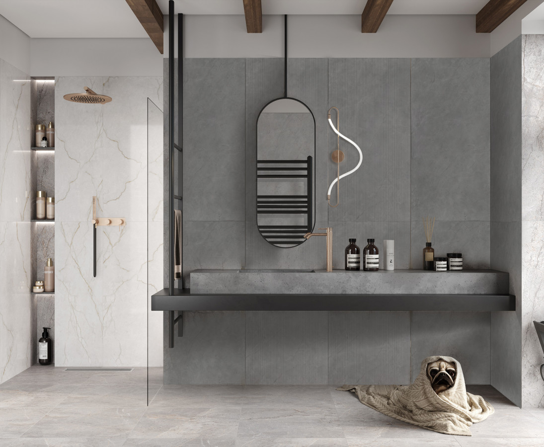 Плитка настенная 120x60 Fog Gris Matt Carving матовая Realistik
