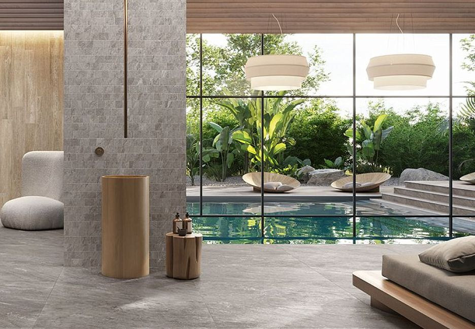 Керамогранит 120x60 Quarzite Essence матовая, противоскользящая, рельефная серый камень 9мм Caesar