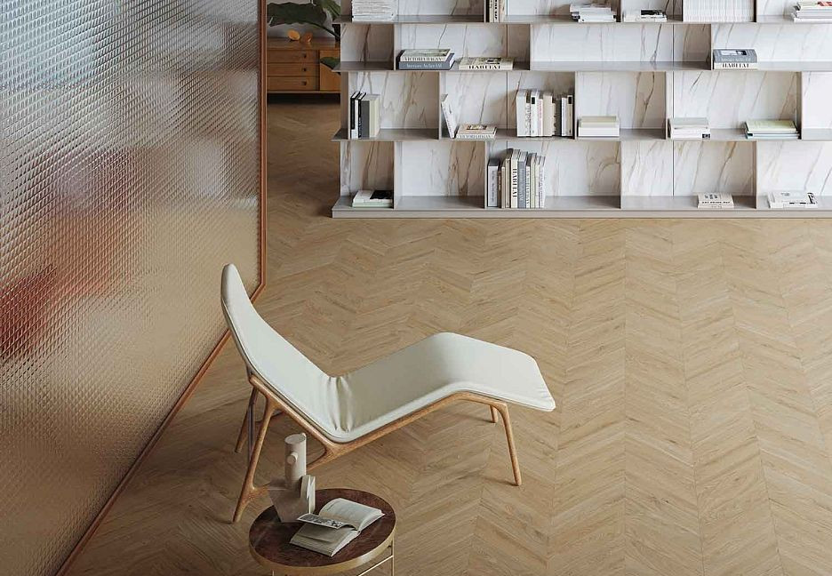 Керамогранит 54x11 Chevron 60° Avorio Mimesis матовая белый дерево 9мм Emil Ceramica
