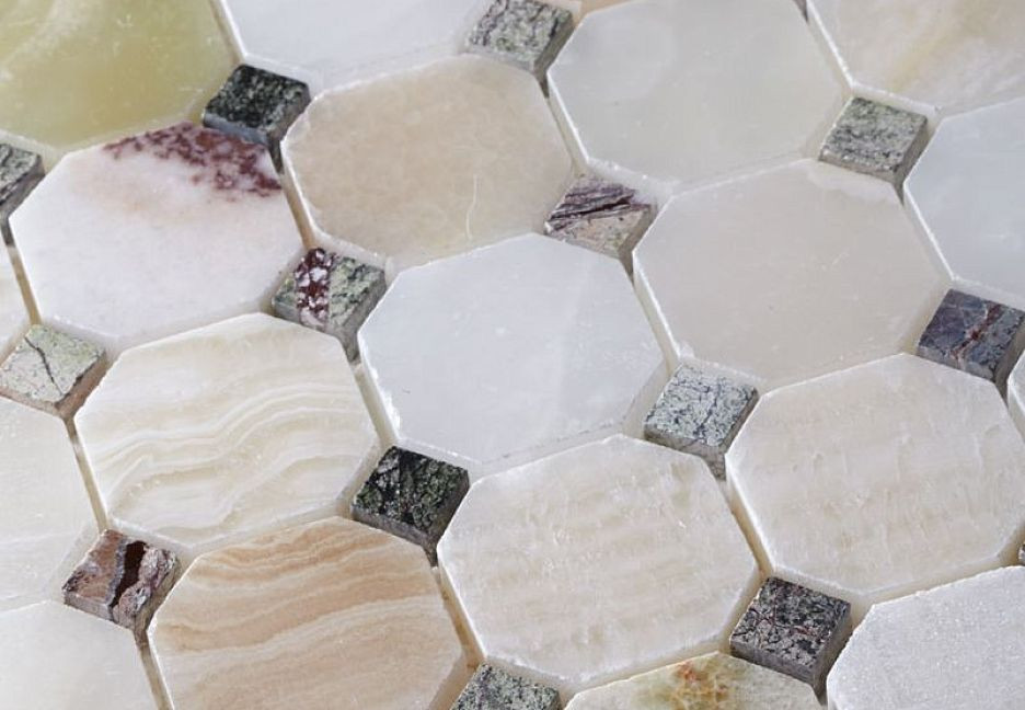 30x30 Mm Octagon-Bott+Dark Octagon Pattern глянцевая, полированная бежевый мозаика 10мм
