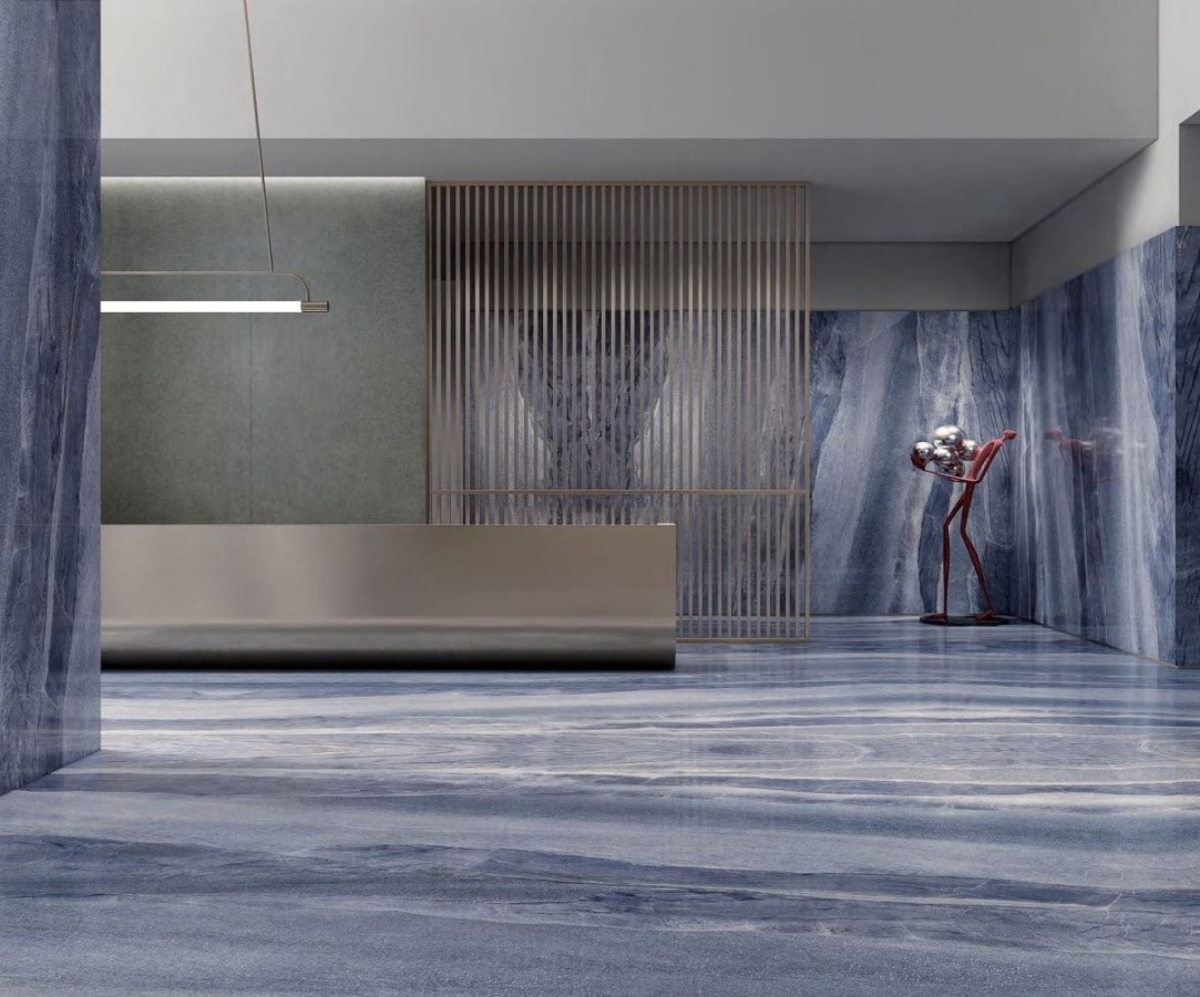 Керамогранит Zodiac 320x160 Azul Macaubas Polished полированный под мрамор синий 6мм MN413BP321606