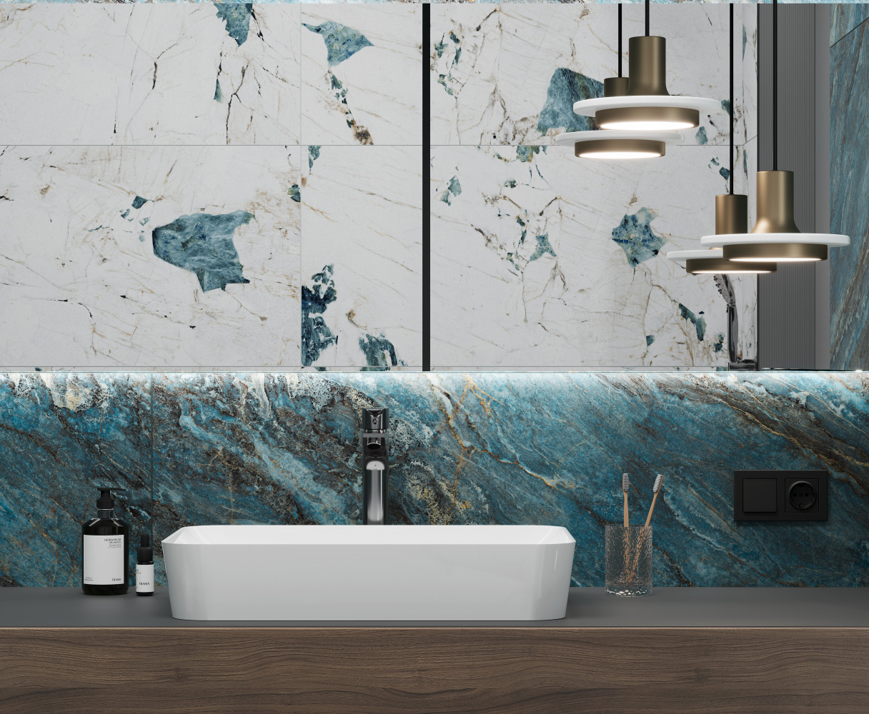 120x60 бирюзовый полу блестящий Бим Туркуаз лаппатированная шайн глазурованная