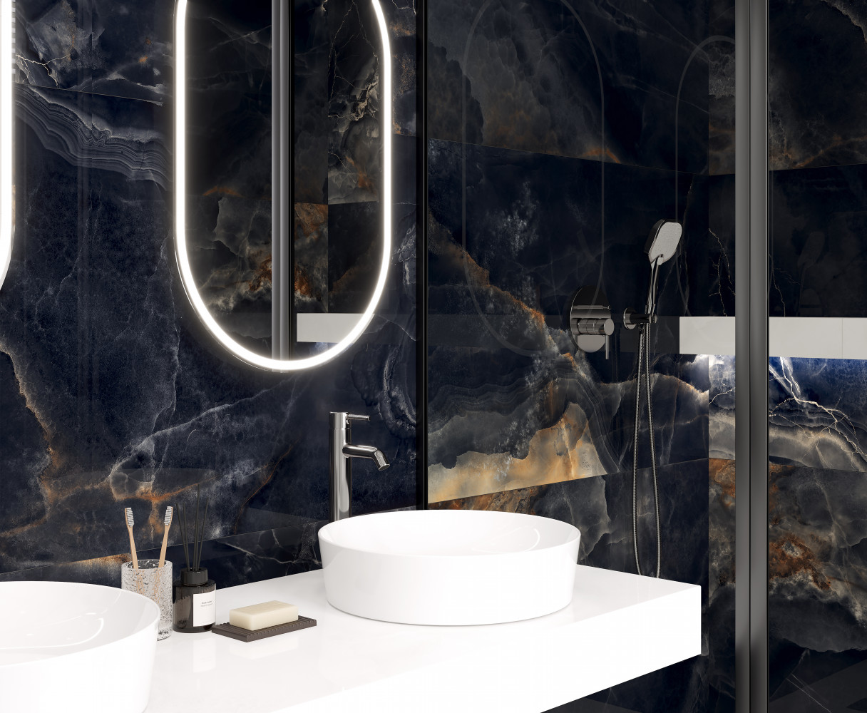 Плитка напольная керамогранит Laparet 160x80 чёрный Интерстеллар Блэк полированная глазурованная 160x80