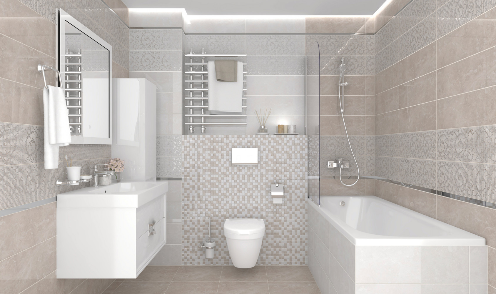 Плитка настенная Laparet 60x20 декор Ромбо бежевый Электра глянцевая глазурованная 60x20