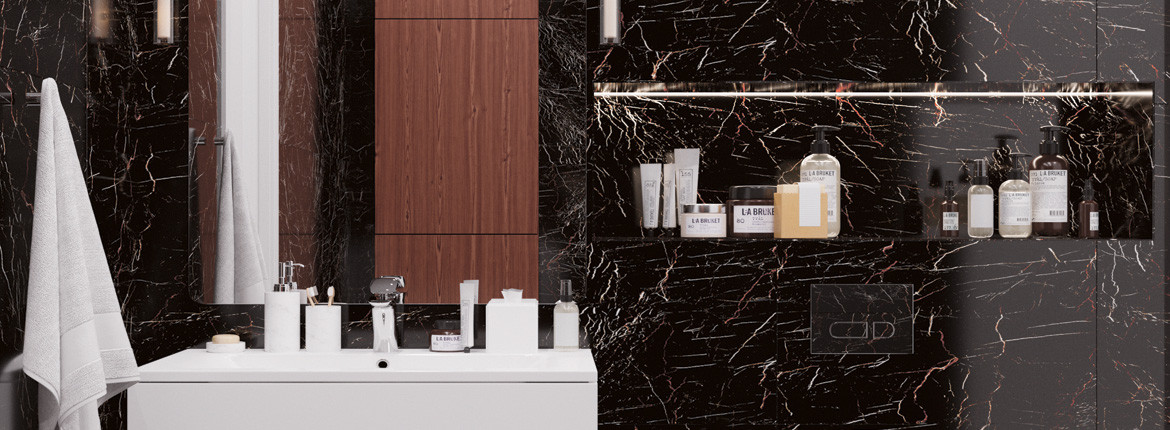 Керамогранит Palacio Nero Marquina High Gloss полированная зеркальная 120x60 9мм Staro