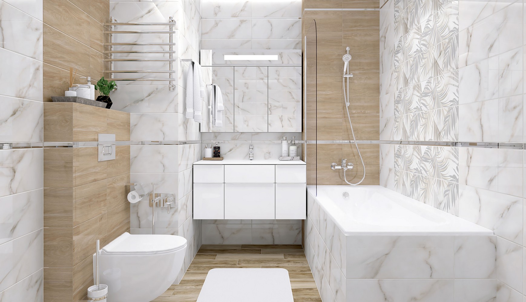 Плитка настенная Laparet 50x20 Фронда бежевый Ивори глянцевая глазурованная 50x20