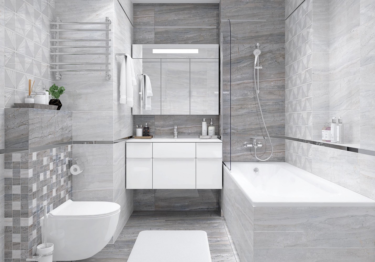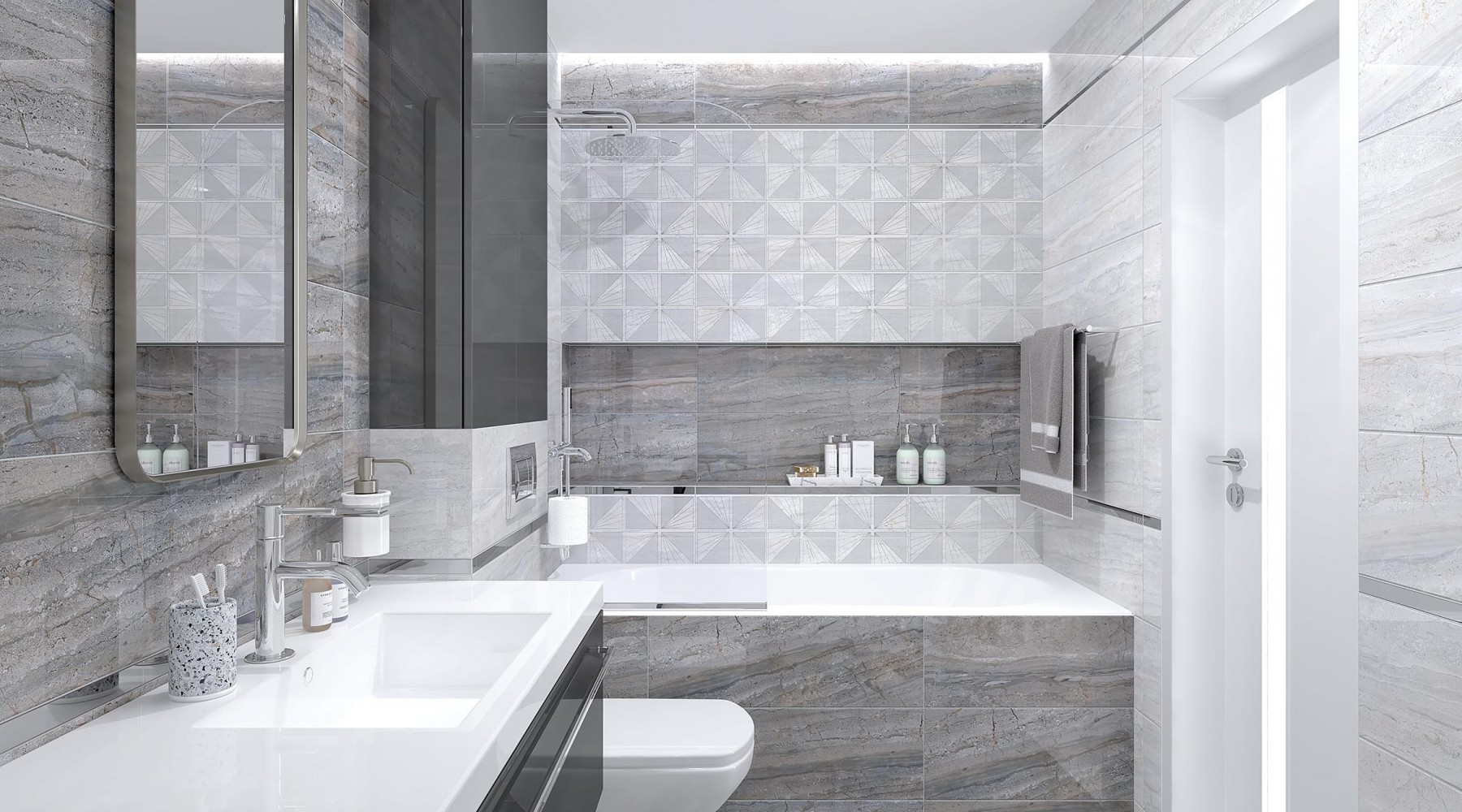 Плитка настенная Laparet 75x25 светло-серый Мун глянцевая глазурованная 75x25