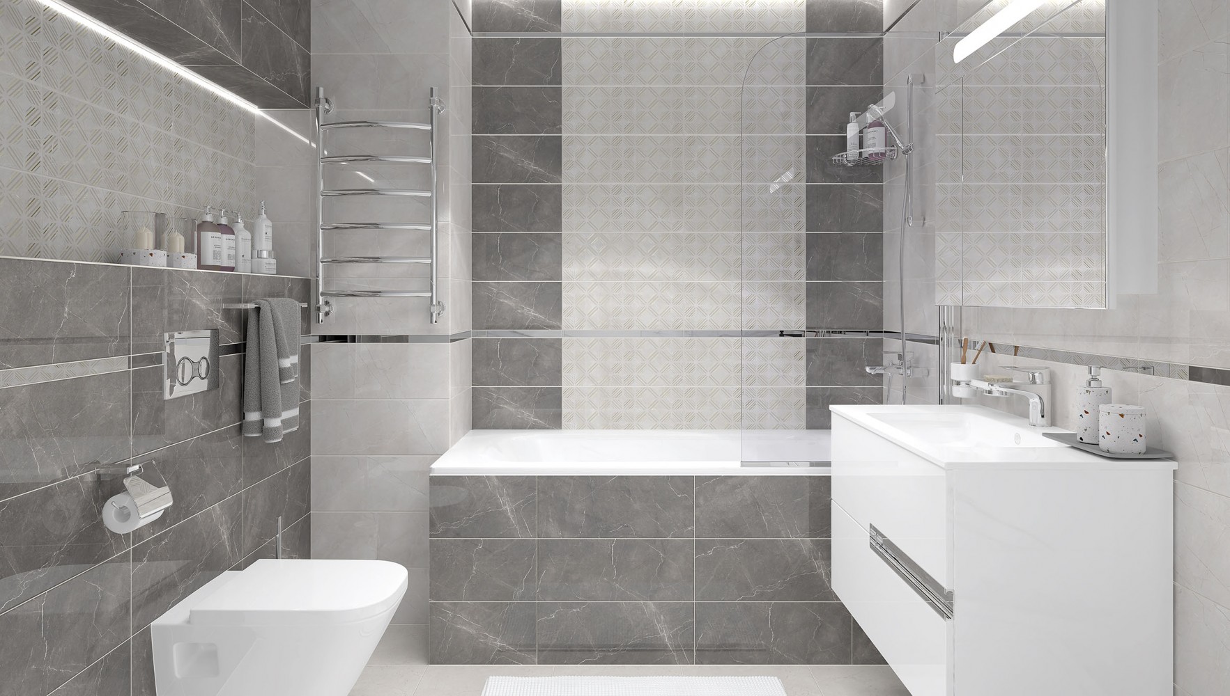 Плитка настенная Laparet 50x20 серый Фронда глянцевая глазурованная 50x20