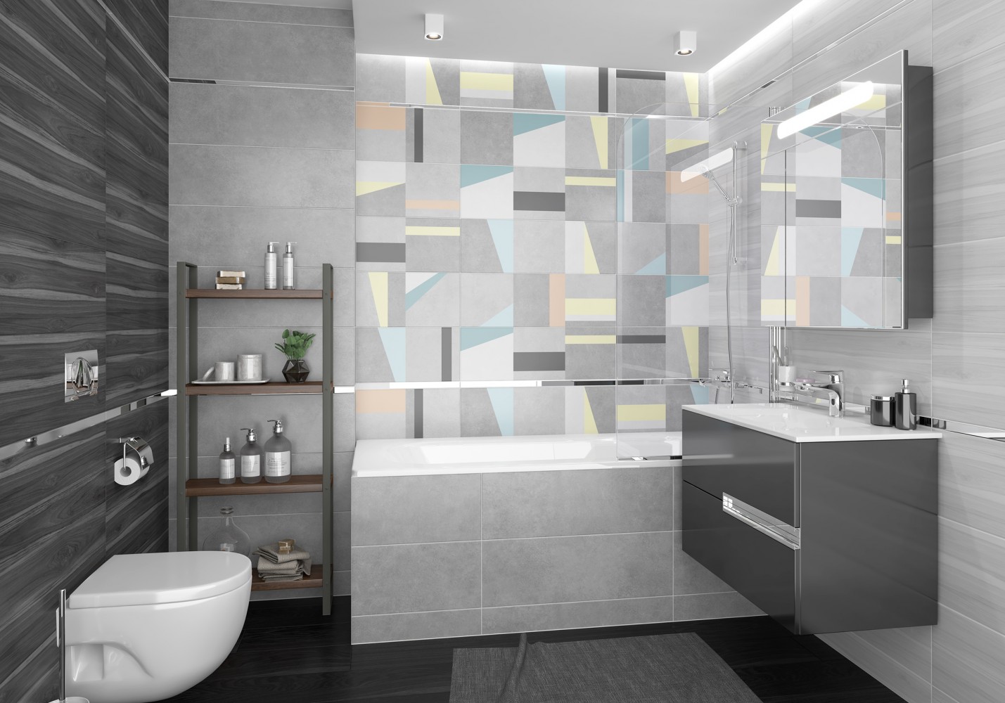 Плитка настенная Laparet 75x25 серый Цемент матовая глазурованная 75x25