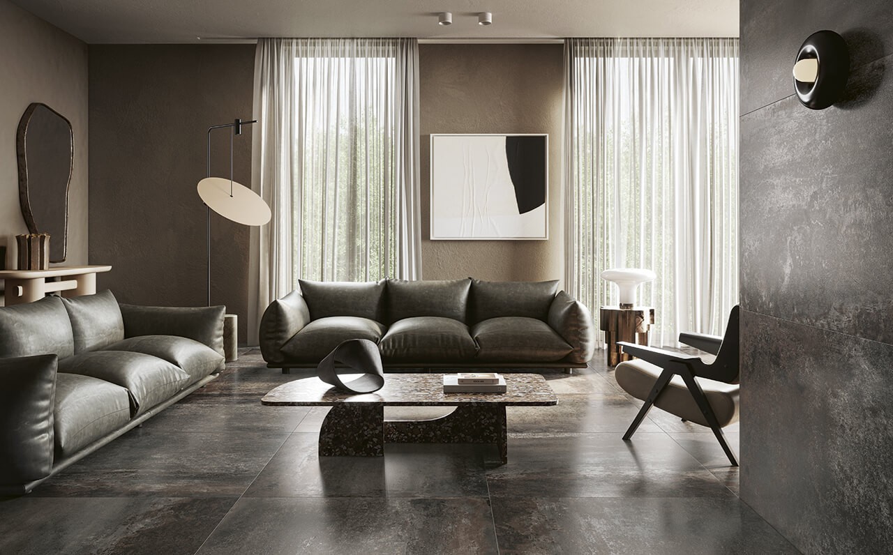 Керамогранит Serenissima 120x60 9.5мм Construire metallo ruggine ret матовая коричнево-серый